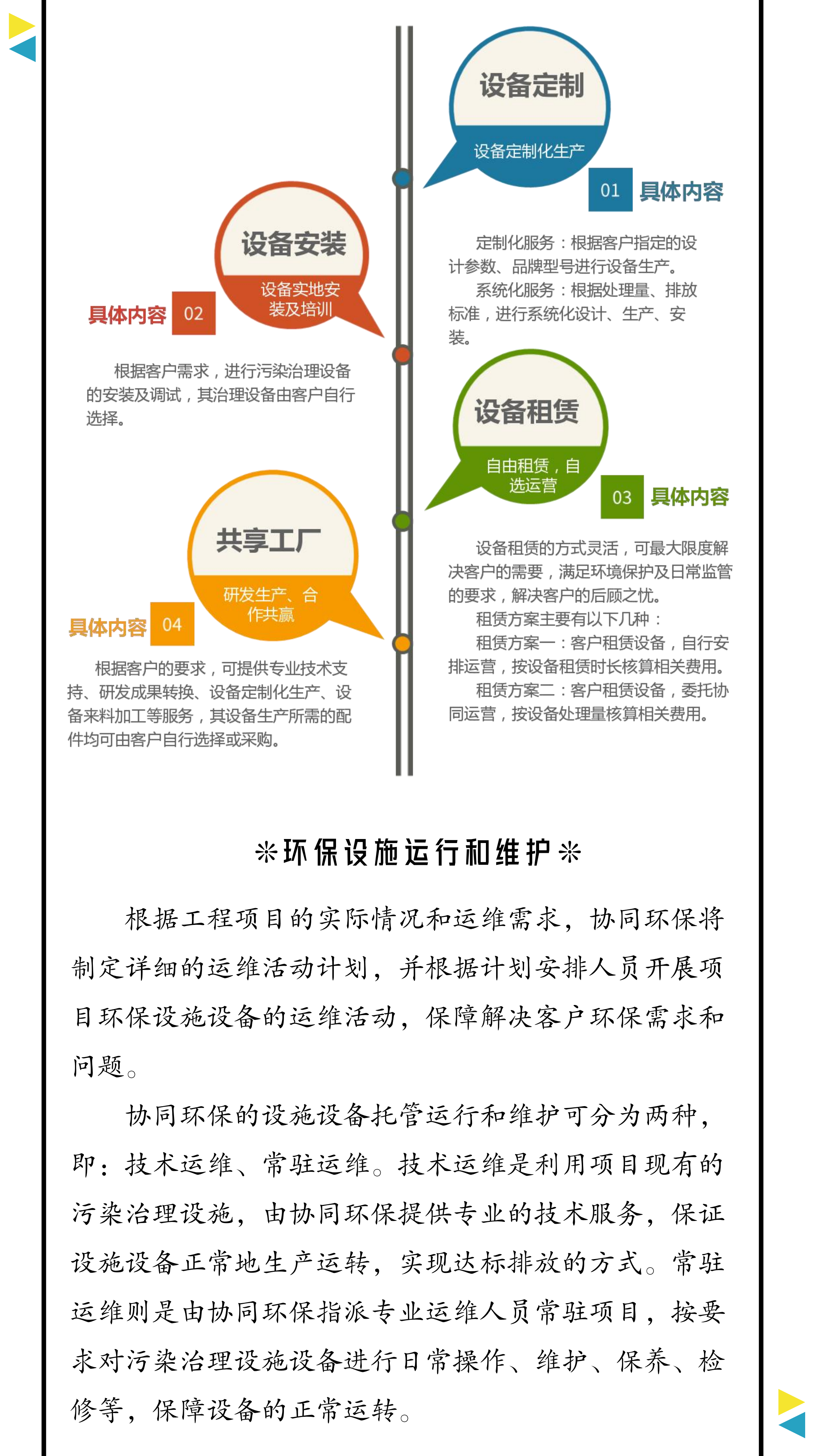 協(xié)同環(huán)保采用“共享工廠”的經(jīng)營(yíng)方式,爭(zhēng)取實(shí)現(xiàn)全面解決客戶的需求。根據(jù)需求采取多種生產(chǎn)方式,為客戶提供定制化服務(wù),包括: