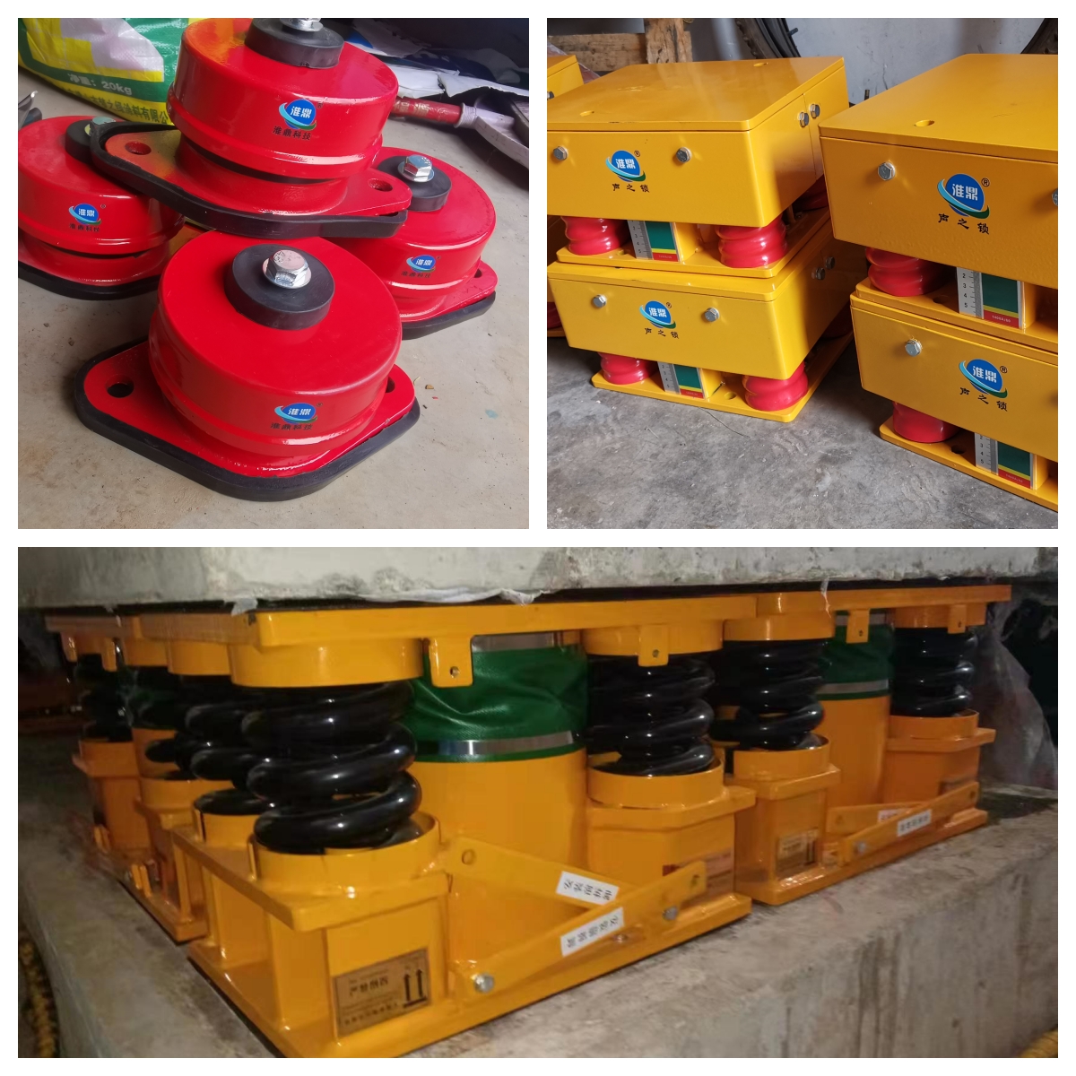 隔振器:頻率低于 6Hz的低頻靜音減振器??蛇x大撓度(不低于 50mm)低頻彈簧減振器配合天然膠墊安裝或者加裝空氣彈簧減振器。因是改造項(xiàng)目,彈簧減振器高度過大,不適合安裝,所以設(shè)計(jì)安裝超低頻靜音系列的空氣彈簧減振器、橡膠減震器、部分鋼彈簧減震器等其他減振產(chǎn)品配合使用。隔振降噪原理:空氣是振動(dòng)和噪音的不良導(dǎo)體,用隔振手段把設(shè)備與樓板隔離開,由剛性連接轉(zhuǎn)換成軟性連接,中斷振動(dòng)傳播途徑。 設(shè)計(jì)隔振效率:90%。 隔振效果:安裝后整個(gè)隔振體系的自振頻率達(dá)到 3Hz以下,低頻振動(dòng)及因低頻振動(dòng)產(chǎn)生的噪音基本消除。