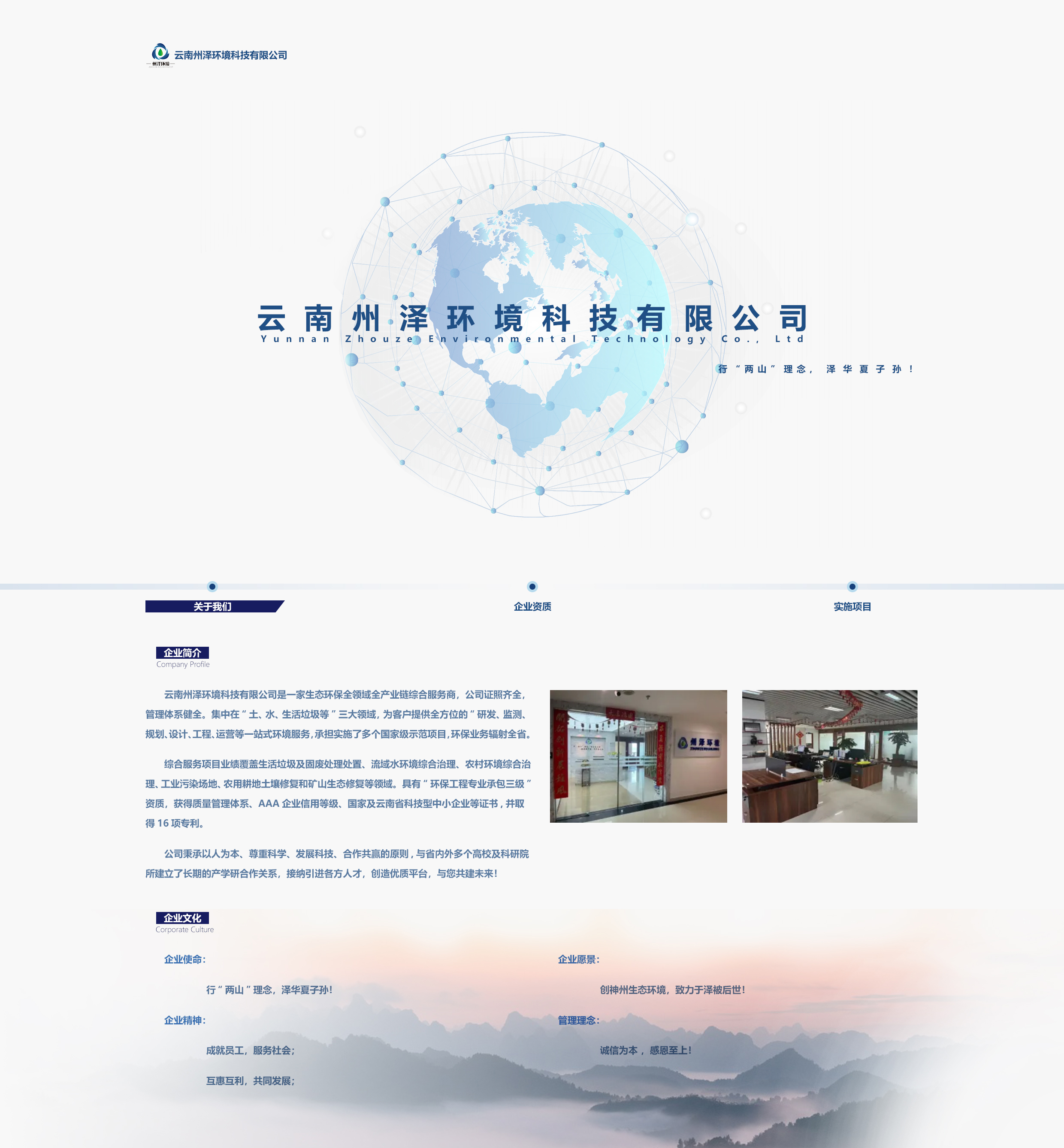 云南州澤環(huán)境科技有限公司是一家生態(tài)環(huán)保全領(lǐng)域全產(chǎn)業(yè)鏈綜合服務(wù)商,公司證照齊全,管理體系健全。集中在“土、水、生活垃圾等”三大領(lǐng)域,為客戶提供全方位的“研發(fā)、監(jiān)測、規(guī)劃、設(shè)計、工程、運營等一站式環(huán)境服務(wù),承擔(dān)實施了多個國家級示范項目,環(huán)保業(yè)務(wù)輻射全省。