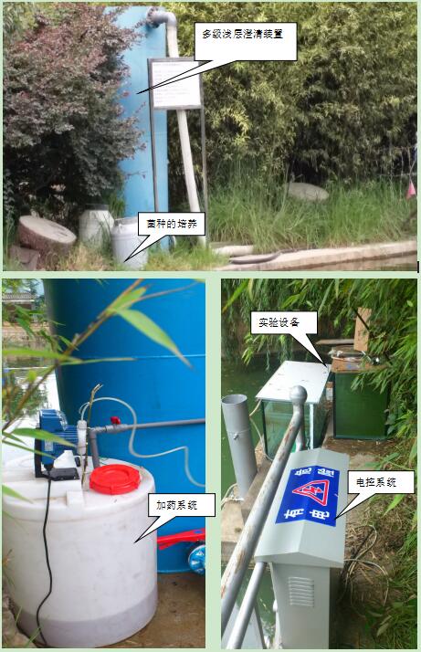 項目采用有效微生物菌技術(shù)結(jié)合循環(huán)凈水工藝對小型湖泊、池塘、水庫等污染匯富營養(yǎng)化水體進(jìn)行原位、異位結(jié)合修復(fù),首次提出了富營養(yǎng)化水體藻菌共生概念,快速建立水體生態(tài)自凈平衡系統(tǒng),實現(xiàn)對水體富營養(yǎng)化的根本治理。通過對天然沸石超微改性后,配合常用凈水劑復(fù)合制得物理型助凝劑(JYX-助凝劑),吸附、脫色、助凝等功能優(yōu)異,可有效吸附水中氮磷。研制出漂移式多功能凈水設(shè)備,集凈化除藻、投菌、充氧、噴泉景觀等功能于一體,具有節(jié)能、降濁、除藻效率高、投資少等優(yōu)點。利用該工藝處理后的水質(zhì)符合地面水環(huán)境質(zhì)量標(biāo)準(zhǔn)中的Ⅲ類水質(zhì)標(biāo)準(zhǔn)。