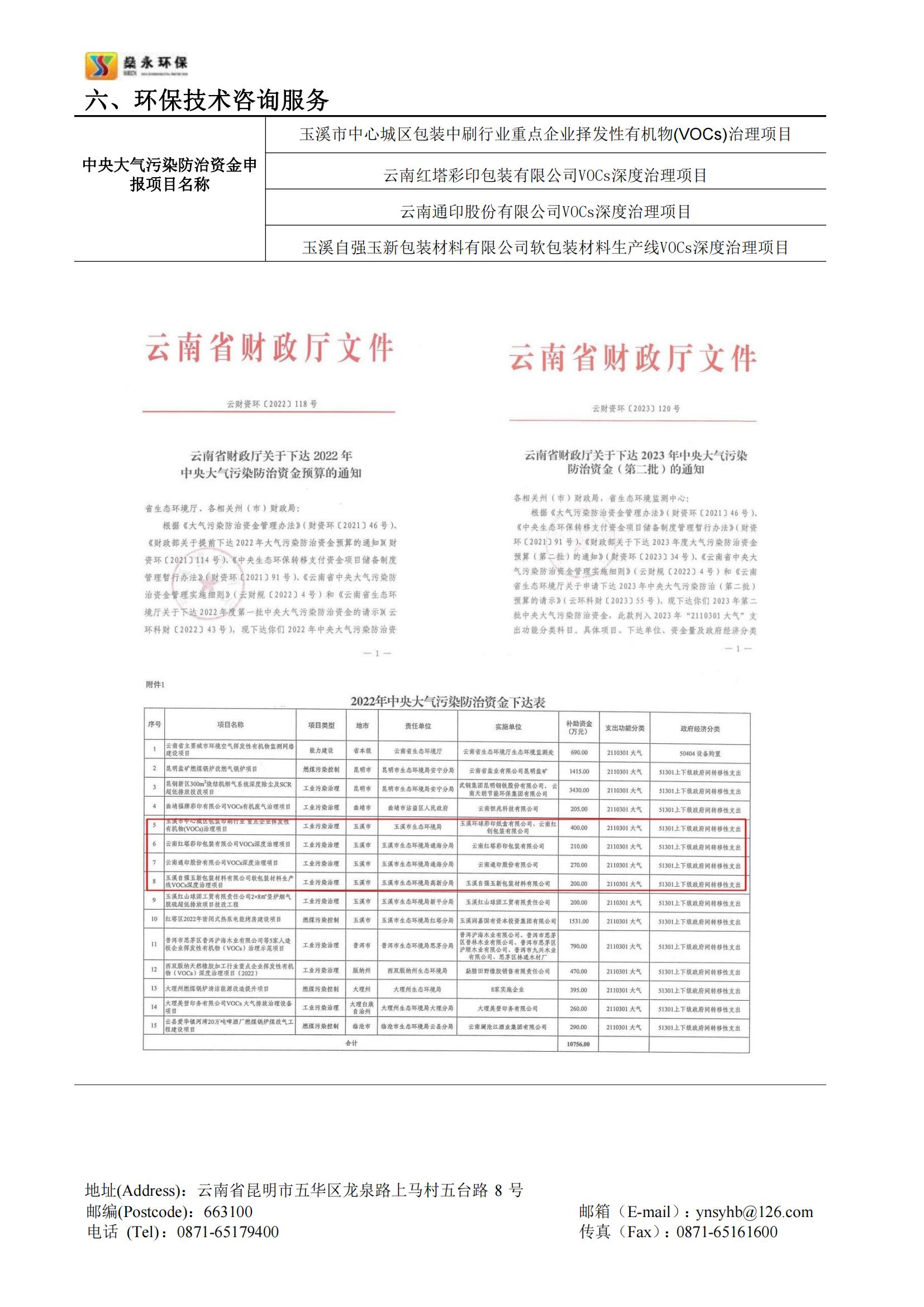 截止2023年10月,公司幫助云南省多個行業(yè)企業(yè)成功申報的中央大氣污染防治資金已入庫項目共計20余個,申報項目已獲批總資金近一億余元。公司承接的云南省內(nèi)中央大氣污染防治資金申報項目申報成功率高,成效顯著,服務細致高效,在云南省中央大氣污染防治資金申報領域具有豐富的經(jīng)驗。