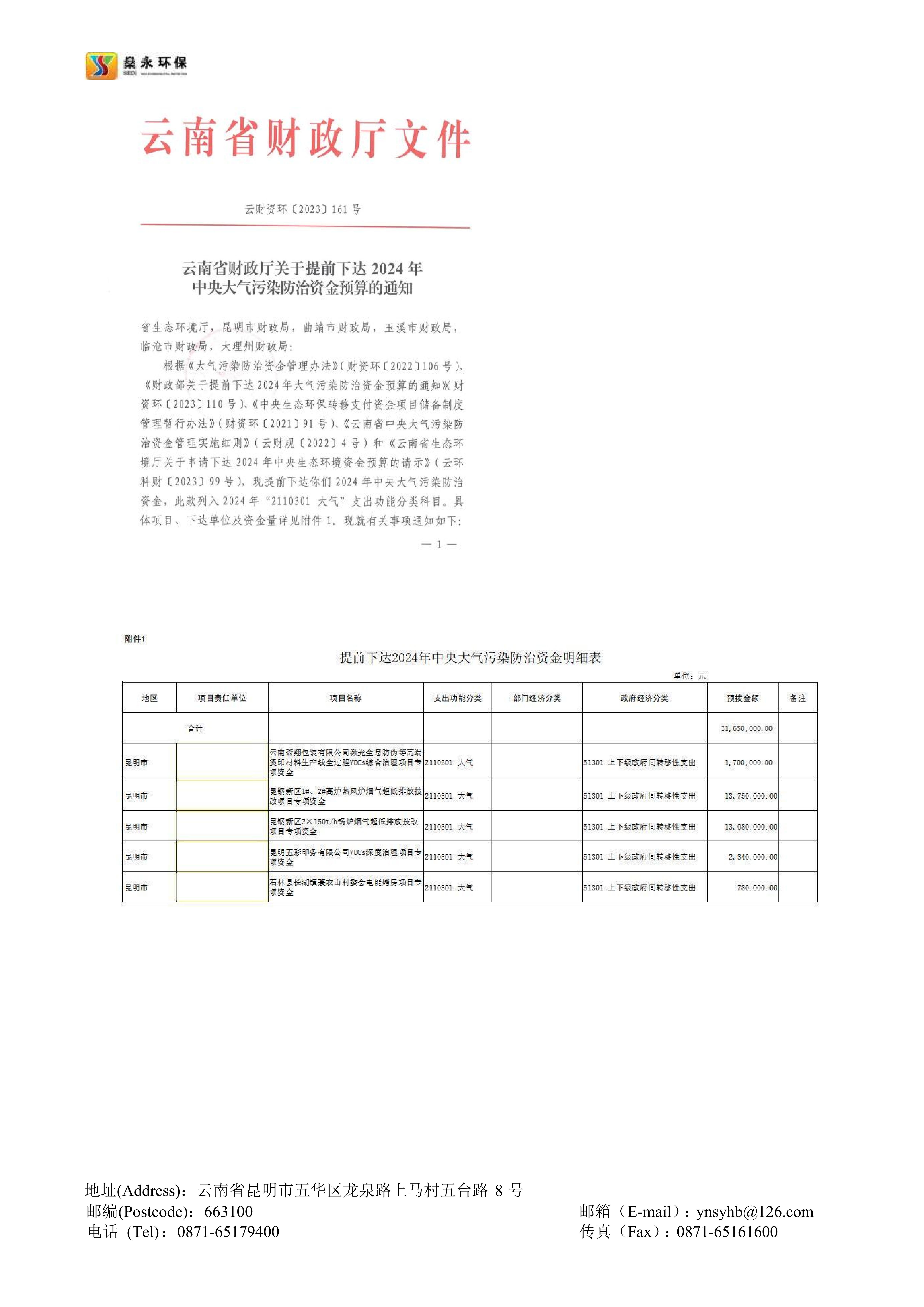 截止2023年10月,公司幫助云南省多個行業(yè)企業(yè)成功申報的中央大氣污染防治資金已入庫項目共計20余個,申報項目已獲批總資金近一億余元。公司承接的云南省內(nèi)中央大氣污染防治資金申報項目申報成功率高,成效顯著,服務(wù)細(xì)致高效,在云南省中央大氣污染防治資金申報領(lǐng)域具有豐富的經(jīng)驗。