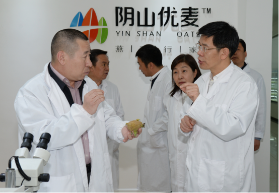民豐種業(yè)董事長盧文兵對公司近年來的發(fā)展情況以及企業(yè)三產(chǎn)融合的實施布局情況向黃志強(qiáng)副主席進(jìn)行了詳細(xì)的匯報。近幾年,民豐種業(yè)已發(fā)展成為中國集馬鈴薯、燕麥研發(fā)、種子生產(chǎn)、分級加工、物流倉儲、推廣銷售于一體的現(xiàn)代化農(nóng)業(yè)企業(yè),是農(nóng)業(yè)產(chǎn)業(yè)化國家重點龍頭企業(yè)、國家高新技術(shù)企業(yè)、自治區(qū)扶貧龍頭企業(yè)。子公司陰山優(yōu)麥已發(fā)展成為中國燕麥深加工企業(yè),是自治區(qū)農(nóng)業(yè)產(chǎn)業(yè)化重點龍頭企業(yè)和自治區(qū)扶貧龍頭企業(yè),所生產(chǎn)的燕麥米、燕麥片、燕麥餐杯、燕麥高纖素等燕麥?zhǔn)称蜂N往全國二十多個省市,成為百姓餐桌上的大健康食品。子公司蒙薯食品“年產(chǎn)8000噸低溫油炸薯條、2000噸胡蘿卜脆片加工項目”也將于今年投產(chǎn)。
