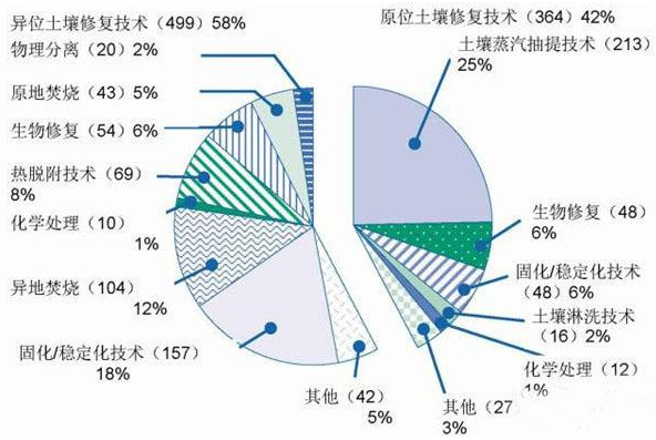 美國超基金場地修復(fù)項目技術(shù)使用分布圖